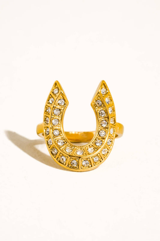 18K Gold Non-Tarnish CZ Horseshoe Ring