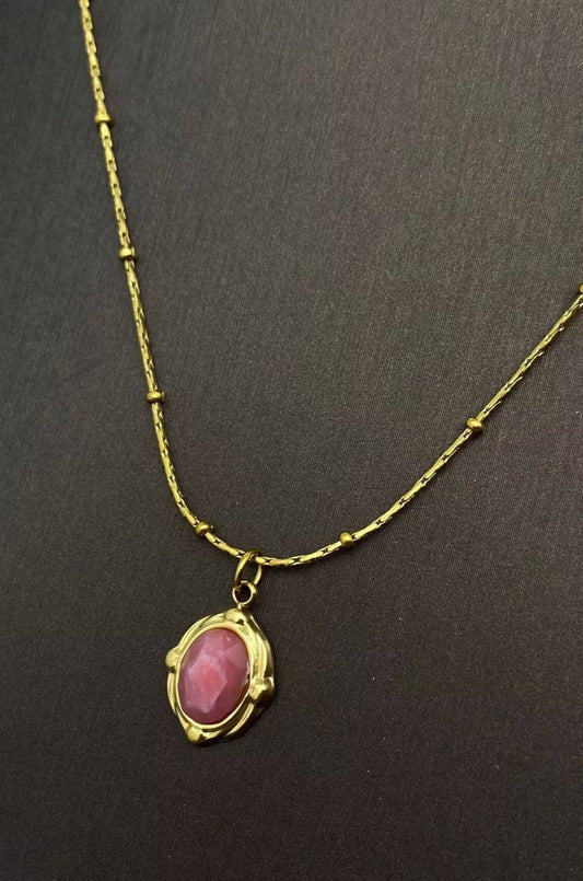Oval Pink Stone Necklace