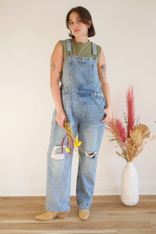 Distressed Denim Overalls