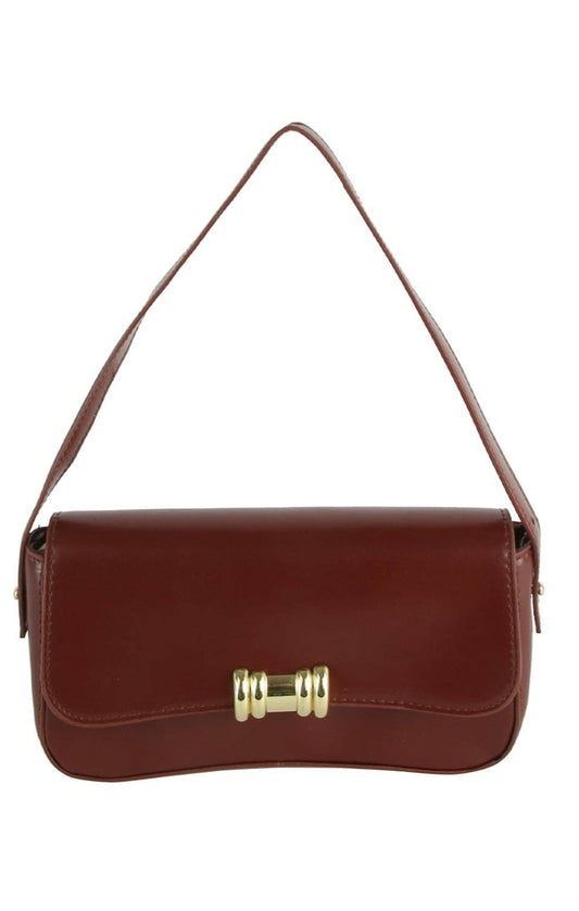 Metal Accent Vegan Leather Shoulder Bag