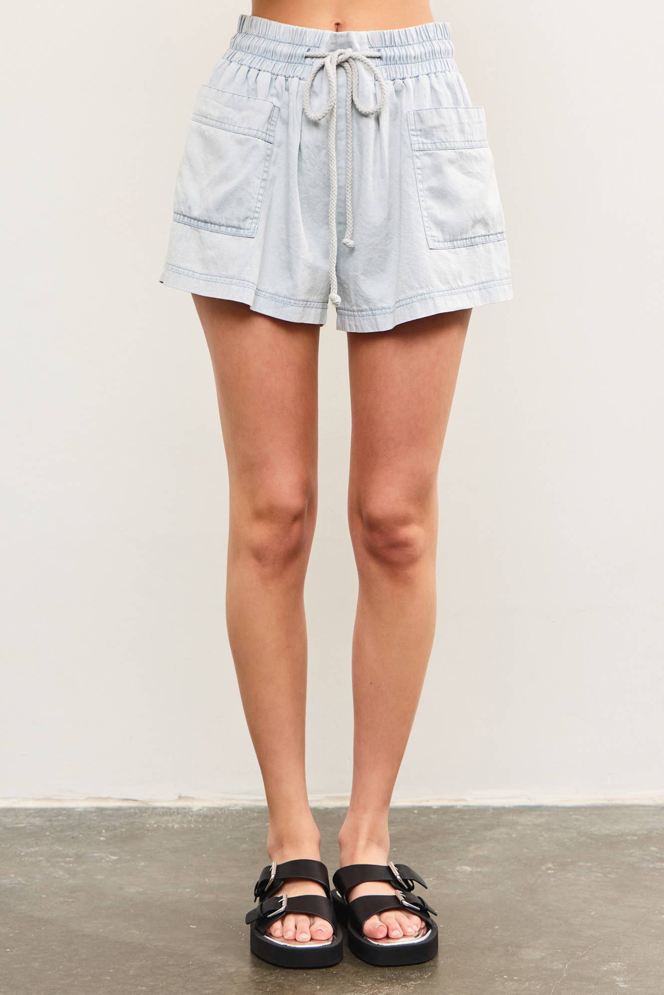 Effortless comfort meets casual style with these lightweight chambray shorts. Featuring an elastic and tie waist for a customizable fit, front pockets for practicality, and a breezy fabric perfect for warm weather. The relaxed silhouette keeps you cool while maintaining an easy, put-together look.