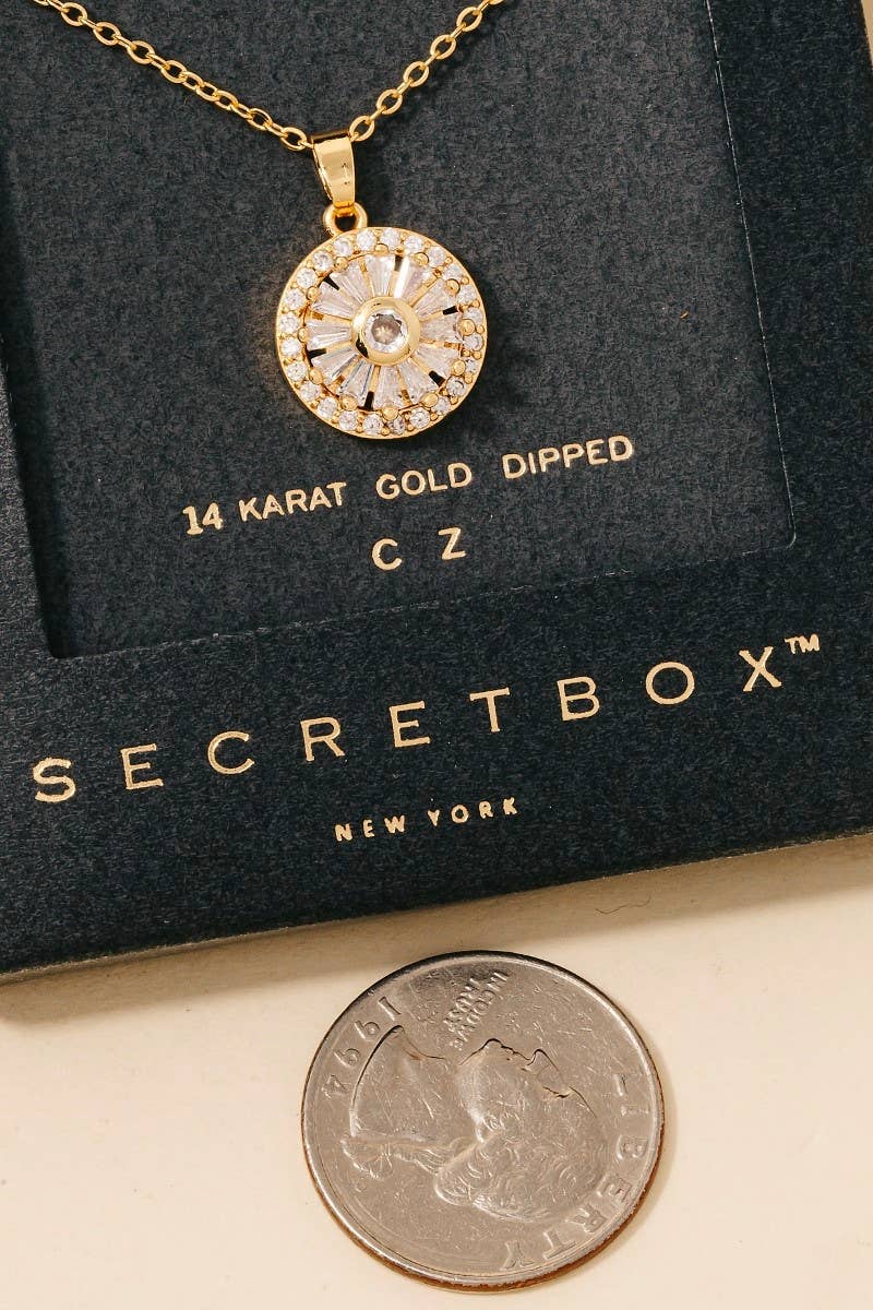 This piece is the perfect way to add some glamour to your look, this necklace boasts a magnificent gold dipped cubic zirconia halo set sun pendant design. This item is perfect for anyone who loves to accessorize and add some personality to their outfits. Available in GD. This item is sold in packs of 1.