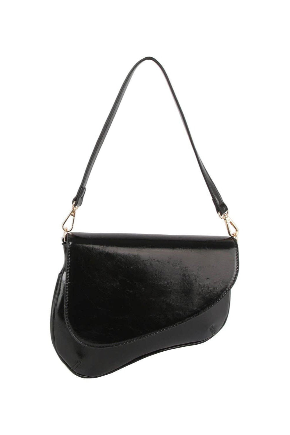 Bring a splash of fun to your outfit with this unique shiny leather saddle bag crafted from glossy PVC. Its gold tone hardware adds a touch of sparkle, while the magnet and top zip closure keep your essentials safe and sound. Inside, a solid lining and handy inner pocket help you stay organized on the go. The adjustable crossbody strap lets you wear it just right, whether you’re dancing through the day or exploring the night. With a perfect size of 10" length, 8.5" depth, and 2.375" height, this bag combines playful style and practical flair for every adventure.